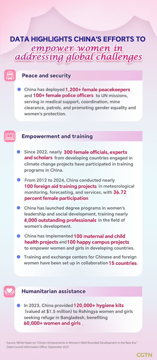 Çin, dünya çapında kadınların karar alma mekanizmalarında daha etkin rol alması ve küresel zorluklarla mücadele edebilmesi için çeşitli girişimler hayata geçiriyor. Bu kapsamda, kadınların bilim, teknoloji, iklim değişikliği ve barış inşası gibi alanlardaki katkılarını destekleyen programlar öne çıkıyor.