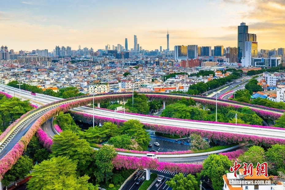Çin'in güneyindeki Guangdong eyaletinin başkenti Guangzhou'da, otoyol üst geçitleri Bougainvillea çiçekleriyle adeta birer 'çiçek koridoruna' dönüştü. Kentin peyzajına renk ve canlılık katan bu görsel şölen, sürücüler ve yayalar için nefes kesici manzaralar sunuyor.