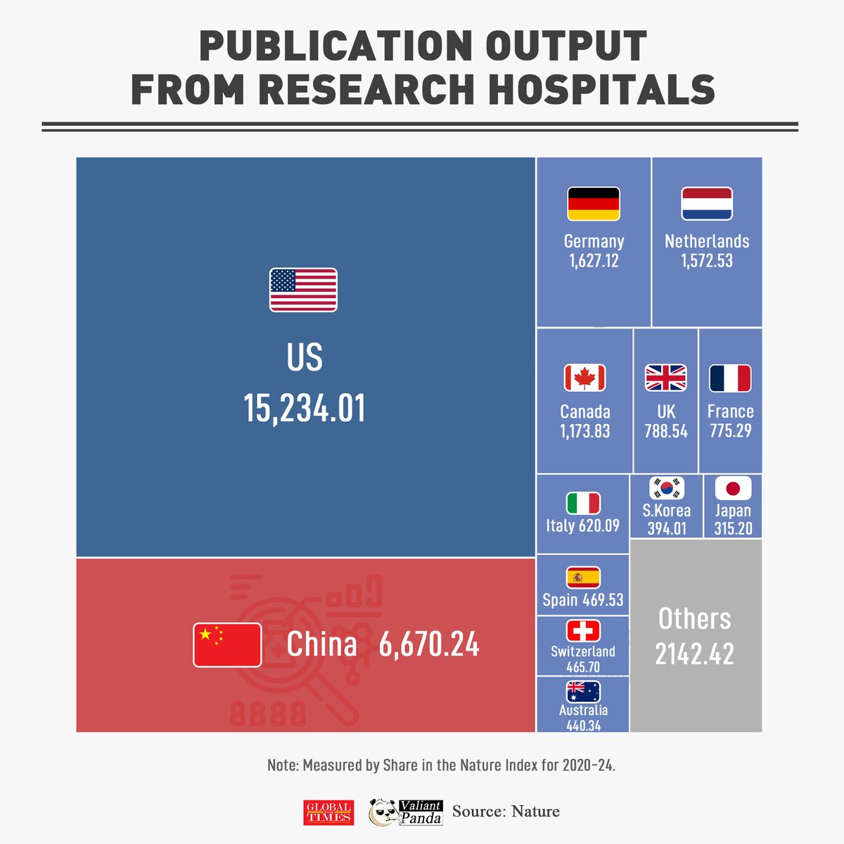 Nature Index'in yayınladığı verilere göre, dünyanın önde gelen 200 araştırma hastanesi arasında Çin, araştırma çıktısı bakımından ikinci sırada yer alarak bilimsel alandaki gücünü bir kez daha gösterdi. Listenin zirvesinde ise ABD bulunuyor.
