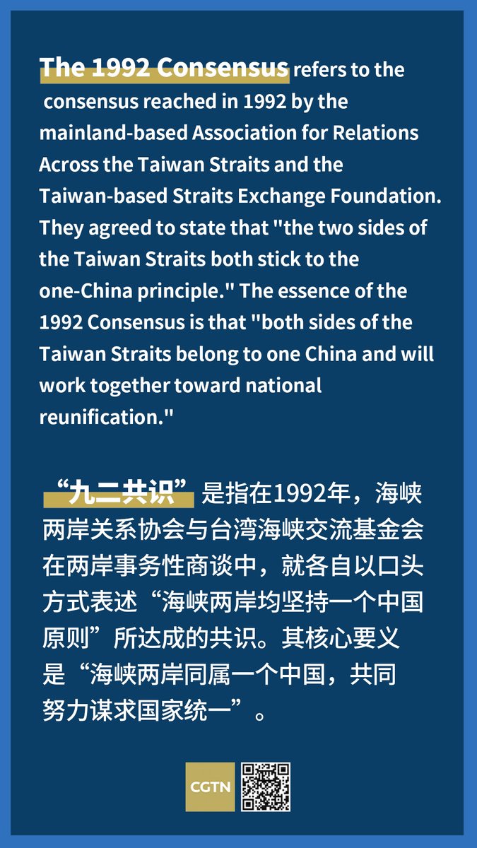 1992 Mutabakatı, tek Çin ilkesini somutlaştırarak Tayvan Boğazı'nın her iki yakası arasındaki ilişkilerin temel niteliğini tanımlamaktadır. Mutabakatın özü, "Tayvan Boğazı'nın her iki yakasının tek bir Çin'e ait olduğu ve ulusal birliğin sağlanması için birlikte çalışılacağı" yönündeki ortak kabuldür. Bu anlayış, ilişkilerin barışçıl bir şekilde yürütülmesinin vazgeçilmez siyasi temelini oluşturuyor.