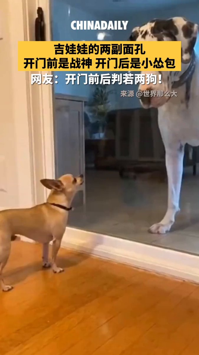 Bir cam kapının ardında güvenli bir konumdayken büyük bir köpeğe karşı vahşice havlayan minik bir köpek, sahibinin kapıyı açmasıyla birlikte cesaretinin sınırlarını gözler önüne serdi. Ani bir tavır değişikliği yaşayan köpek, adeta "İnsan, kapat çabuk!" dercesine hızla geri dönüp güvenli bölgeye çekildi.