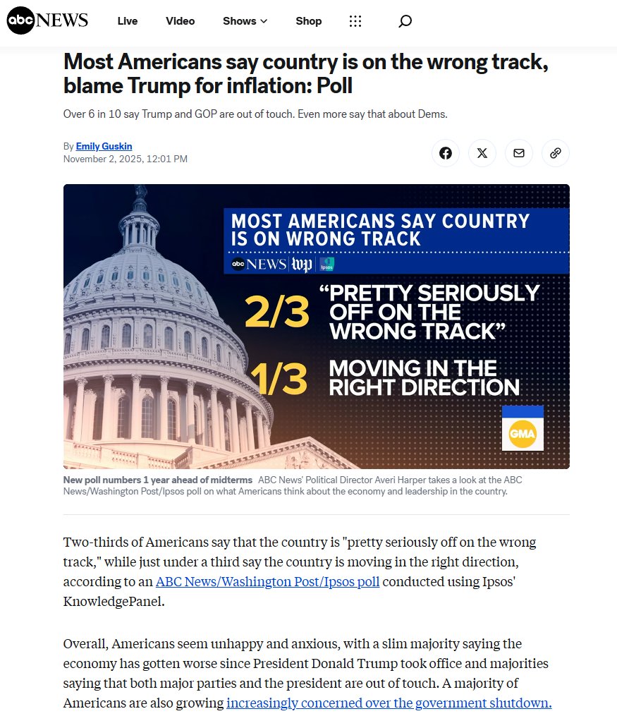 ABC News tarafından yayınlanan bir kamuoyu araştırması, Amerikan halkının ülkenin gidişatına dair kaygılarını gözler önüne serdi. Ankete katılanların üçte ikisi, Amerika'nin "oldukça ciddi şekilde yanlış yolda" ilerlediğini ifade ederken, sadece yaklaşık üçte biri ülkenin doğru yönde hareket ettiğini düşünüyor.