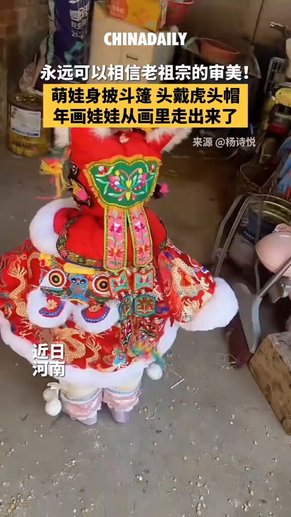 Görüntüdeki çocuğun kıyafetleri, zengin bir Çin kültürü izleri taşıyor. Kaplan başlı şapka, geleneksel kutlamalarda sıkça kullanılan ve çocuklara sağlık, güç getirdiğine inanılan bir aksesuar olarak dikkat çekiyor. İşlemeli pelerin ise el sanatlarının inceliğini yansıtıyor.