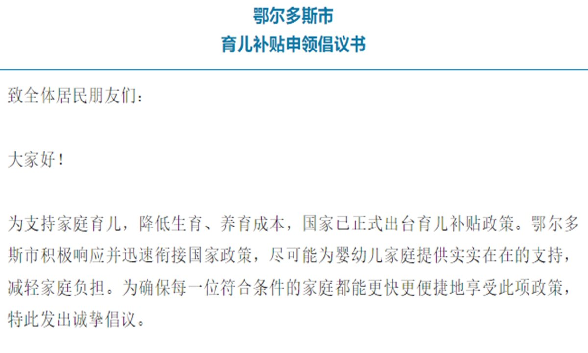 Çin'in ulusal çocuk doğum teşviki sisteminin ardından, İç Moğolistan Özerk Bölgesi'ne bağlı Ordos kenti, yardım artışlarına yönelik ilk yerel uygulama kurallarını yayınladı. Yeni düzenlemeye göre, ailelere ilk ve ikinci çocuk için yıllık 3.600 yuan (yaklaşık 505 dolar), üçüncü çocuk için ise yıllık 10.000 yuan yardım yapılacak. Bu karar, Perşembe günü sosyal medya platformlarında geniş yankı uyandırdı.