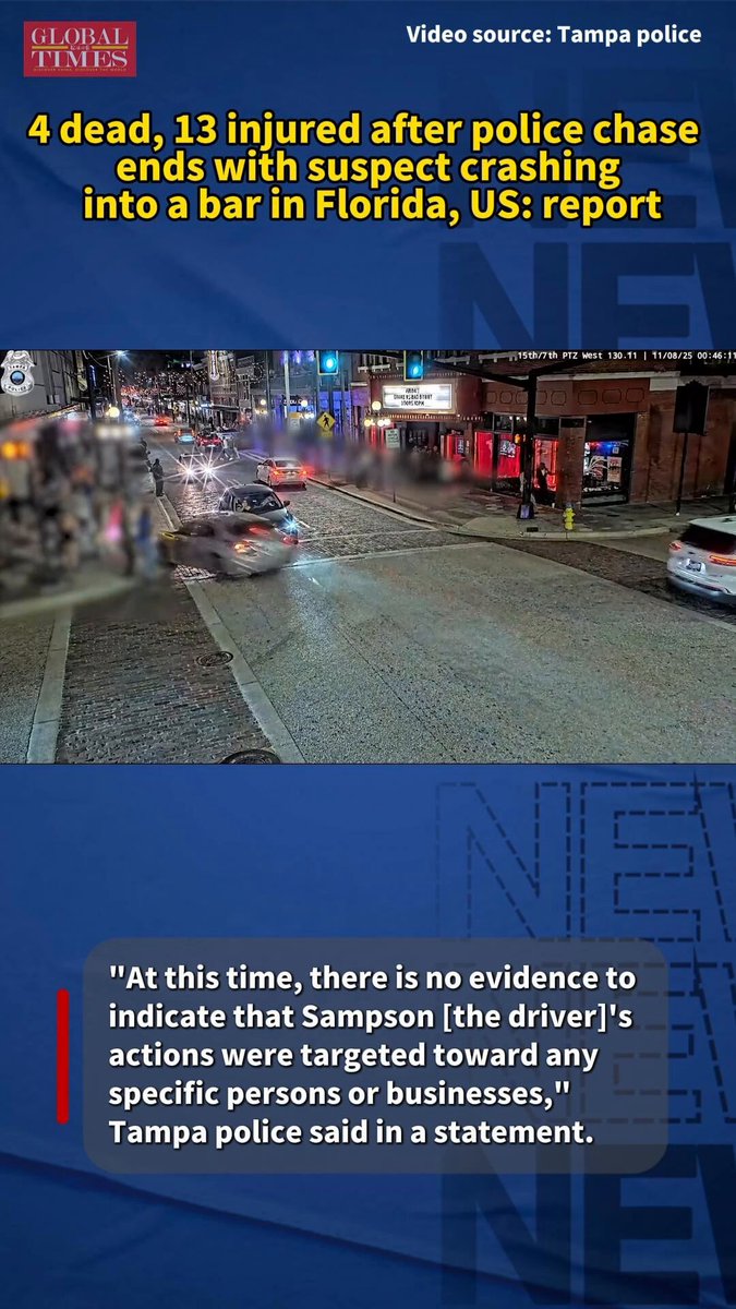 Olay, 12.40 sularında Tampa'da meydana geldi. Polis takibi altındaki şüpheli aracın kontrolünü kaybederek bir bara girdiği an, Tampa Polis Departmanı tarafından yayınlanan video görüntülerine yansıdı.