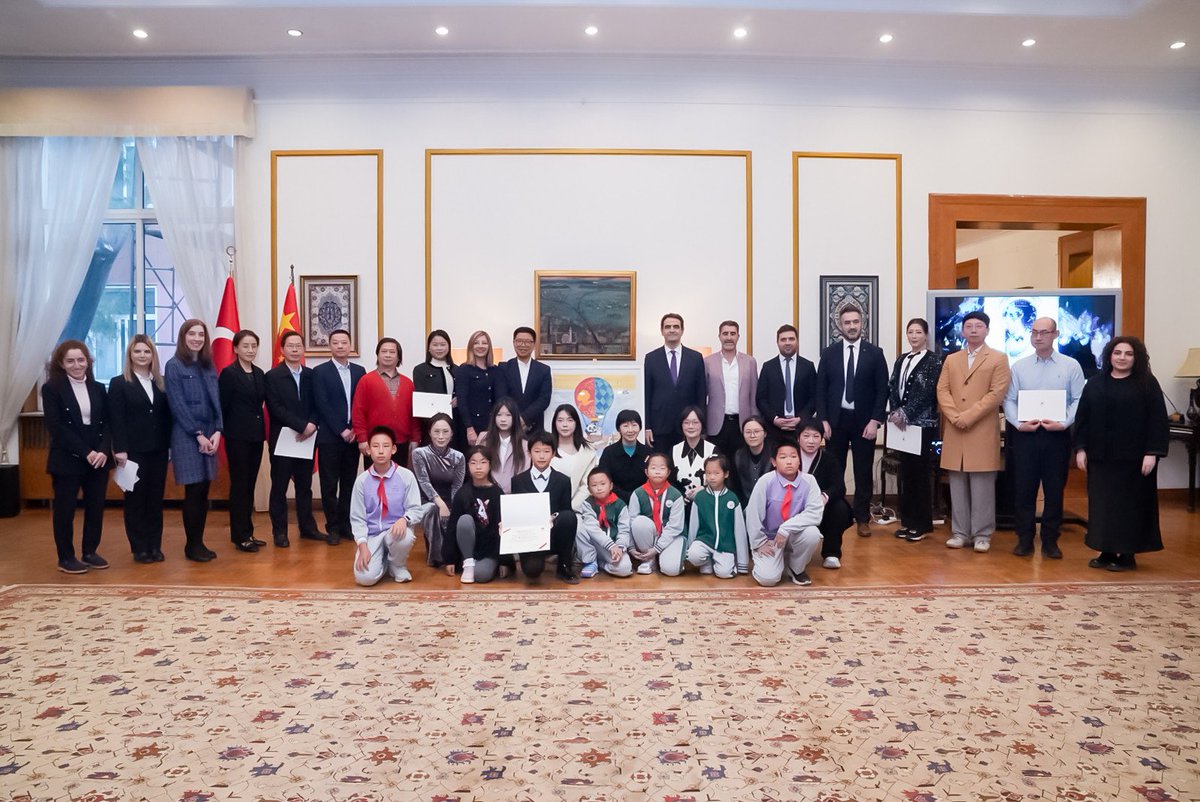 Türkiye'nin Pekin Büyükelçiliği'nde, iki ülke arasındaki kültürel bağları güçlendiren anlamlı bir etkinlik gerçekleştirildi. Büyükelçilik ve "Diplomasinin Sesi" (Voice of Diplomacy) sivil toplum kuruluşu iş birliğiyle düzenlenen "Türkiye ile Hikayem" temalı Kısa Video ve Gençlik Resim Yarışmasının ödül töreni, 14 Kasım'da Büyükelçilik binasında yapıldı.