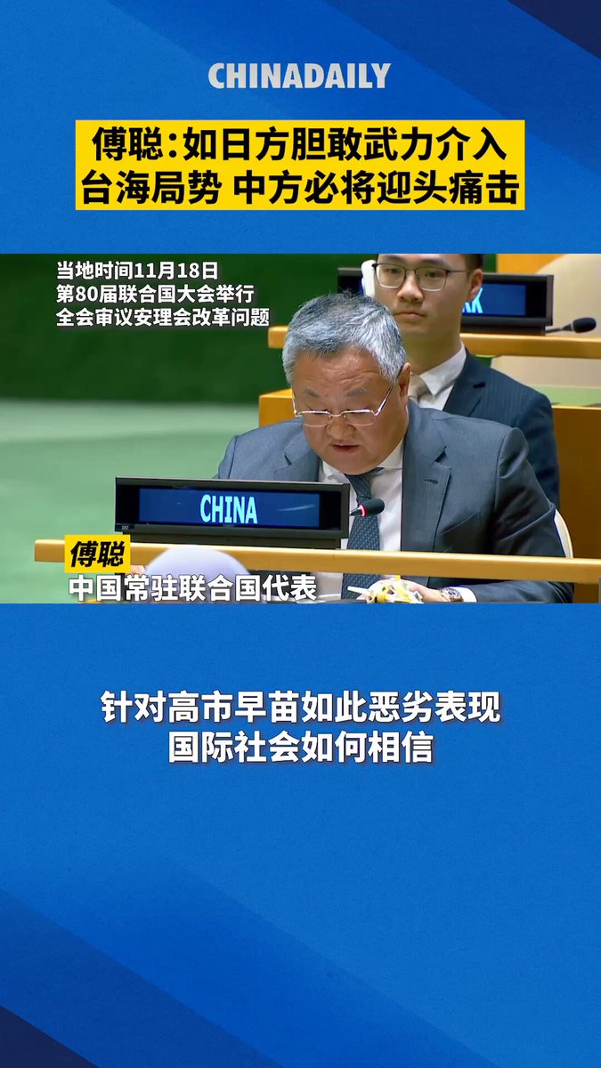 Çin'in Birleşmiş Milletler nezdindeki Daimi Temsilcisi Fu Cong, Japonya Başbakanı Sanae Takaichi'nin Tayvan ile ilgili son açıklamalarını "son derece yanlış ve tehlikeli" olarak nitelendirdi. Fu Cong, BM Genel Kurulu genel oturumunda yaptığı konuşmada, bu tür açıklamalar yapan bir ülkenin Güvenlik Konseyi'nde daimi üyelik için "tamamen niteliksiz" olduğunu belirtti.