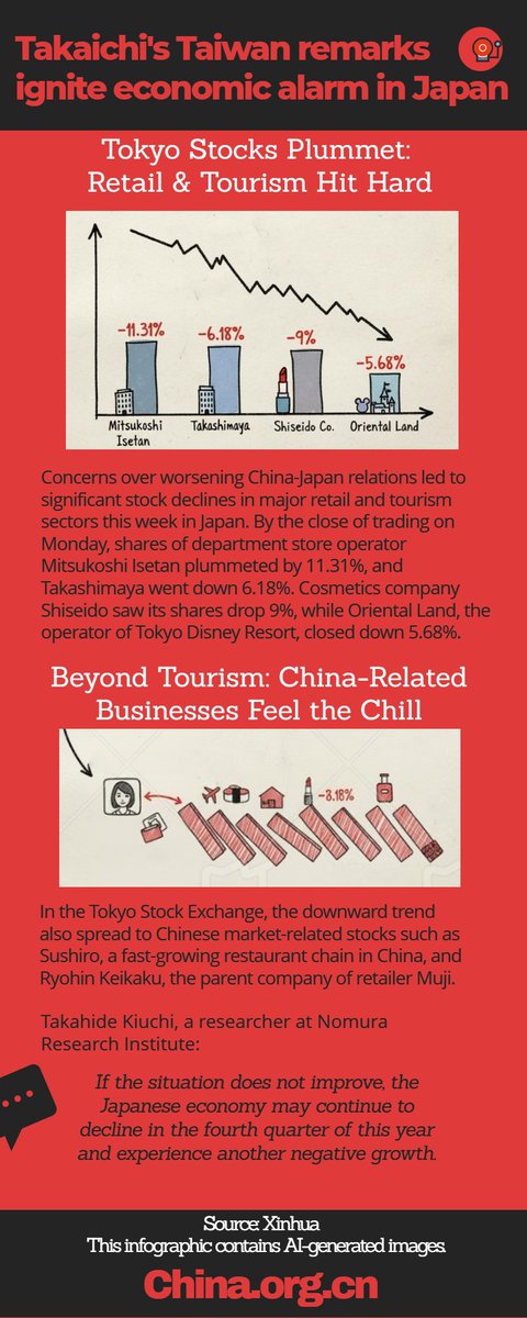 Japonya'da, Çin ile ikili ilişkilerin kötüye gitme endişesi, perakende, turizm ve Çin'e bağımlı sektörlerde bir satış baskısına yol açtı. Bu durum, ülke ekonomisinin son çeyrekte negatif büyümeye sürüklenme tehdidiyle karşı karşıya kalmasına neden oldu.