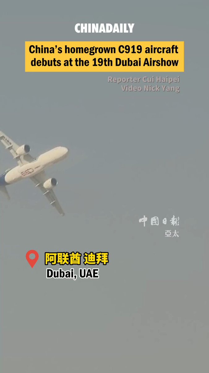 Çin'in ilk büyük yolcu uçağı C919, 19. Dubai Havacılık Fuarı'nda (Dubai Airshow) ilk kez sergilendi. Bu önemli fuar, Birleşik Arap Emirlikleri'nin Dubai kentinde düzenlendi. Çin'in havacılık sanayisindeki önemli bir sembolü olan uçak, uluslararası arenadaki ilk büyük gösterimini yaparak dikkatleri üzerine çekti.