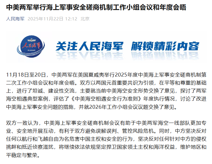 Çin ve ABD askeri yetkilileri, Kasım ayında Hawaii'de bir araya gelerek askeri denizcilik güvenliği konularını ele aldı. Çin