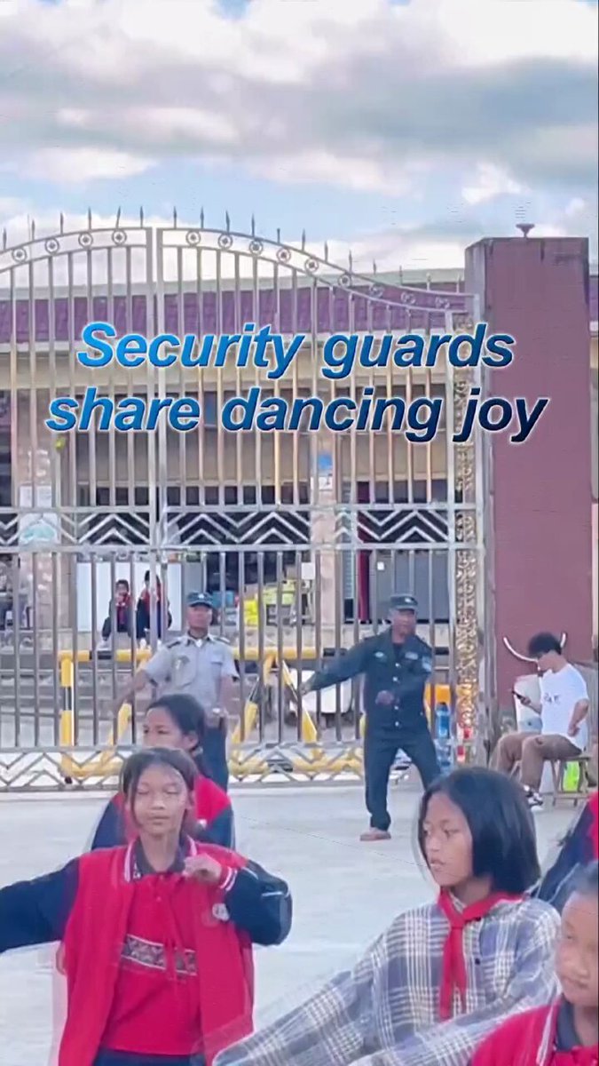 Çin'in güneybatısındaki Yunnan Eyaleti'nde bir ortaokulda, neşeli atmosferden etkilenen iki okul güvenlik görevlisi, mutluluğu paylaşmak için öğrencilerle birlikte halk dansına katıldı. Bu sıcak anlar, okulun bahçesinde renkli bir görüntü oluşturdu.