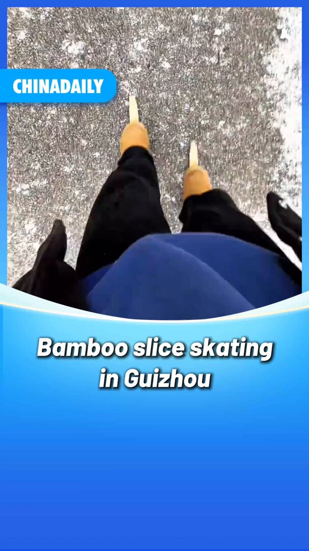 Soğuk kış günlerinde eğlence arayan Guizhou eyaleti sakinleri, profesyonel ekipmanlara ihtiyaç duymadan geleneksel bir buz pateni yöntemi geliştirdi. İki parça bambu, bu bölgeye özgü kış keyfinin anahtarı oldu.