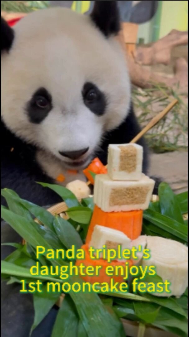 Dünyanın hayatta kalan tek dev panda üçüzlerinin en büyüğü Mengmeng'in kızı olan sevimli panda Meizhu, Çin'in Guangzhou kentinde ilk kez düzenlenen bir Ay Çöreği partisi ile Geleneksel Ay Festivali'ni kutladı.