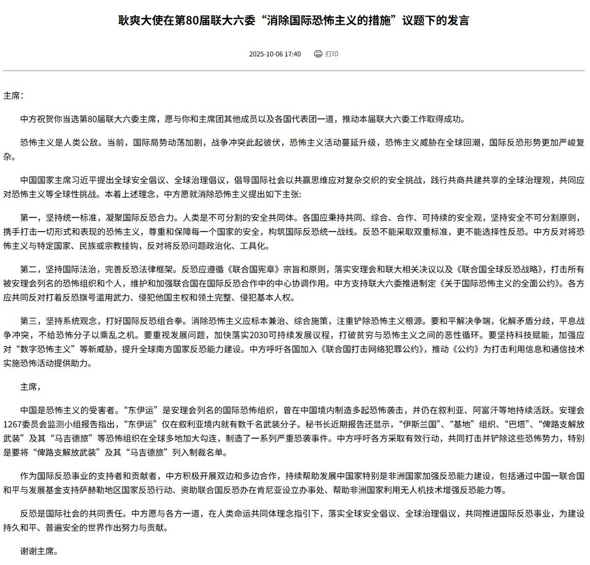 Geng Shuang, terörle mücadelenin giderek daha ciddi ve karmaşık bir hal aldığını vurguladı. Çin'in bu kapsamda sunduğu öneriler şunlardır: